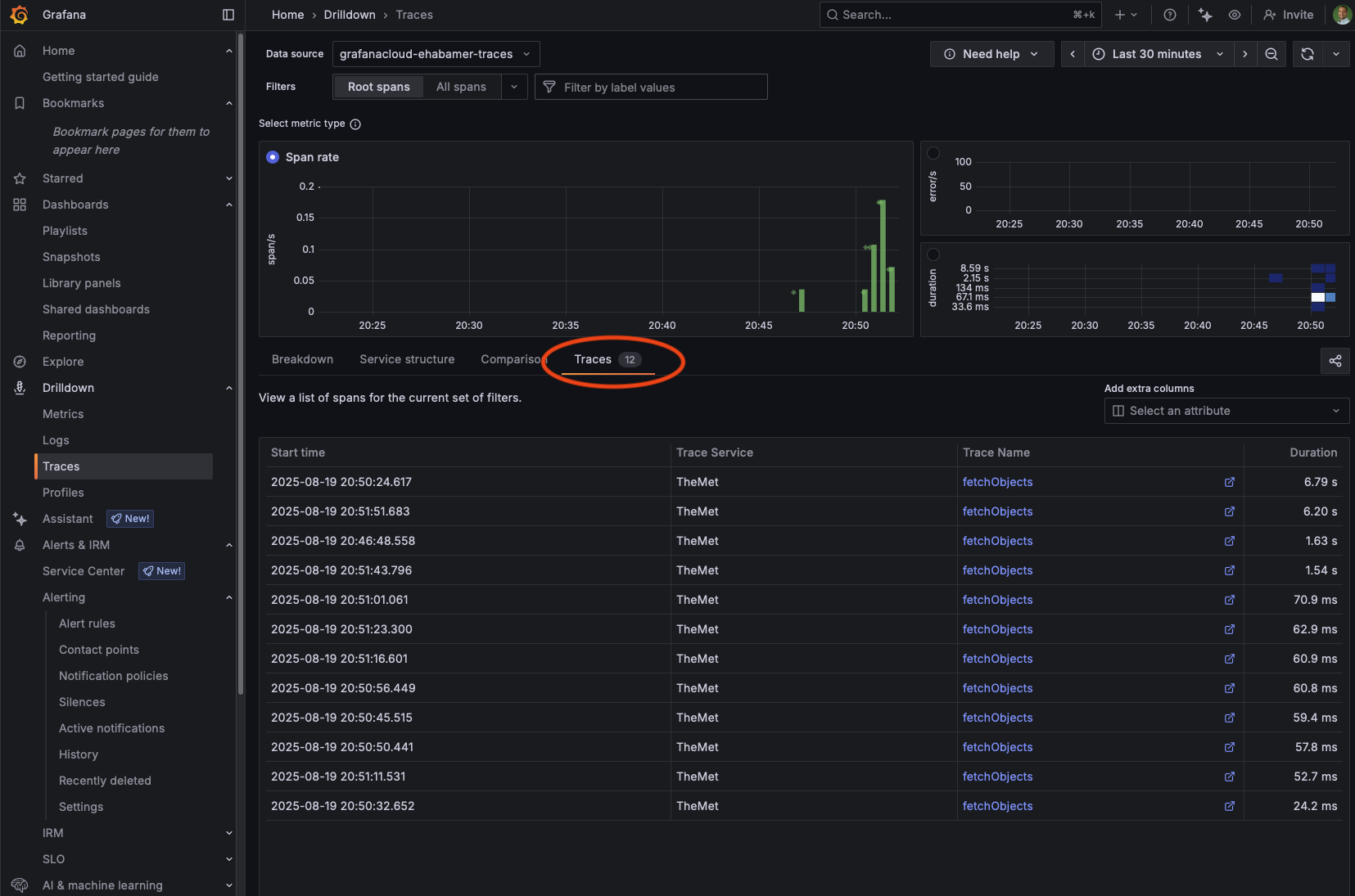 Reviewing your Spans on Grafana